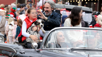 Their four-legged friends, including two dogs and two cats, also appeared.